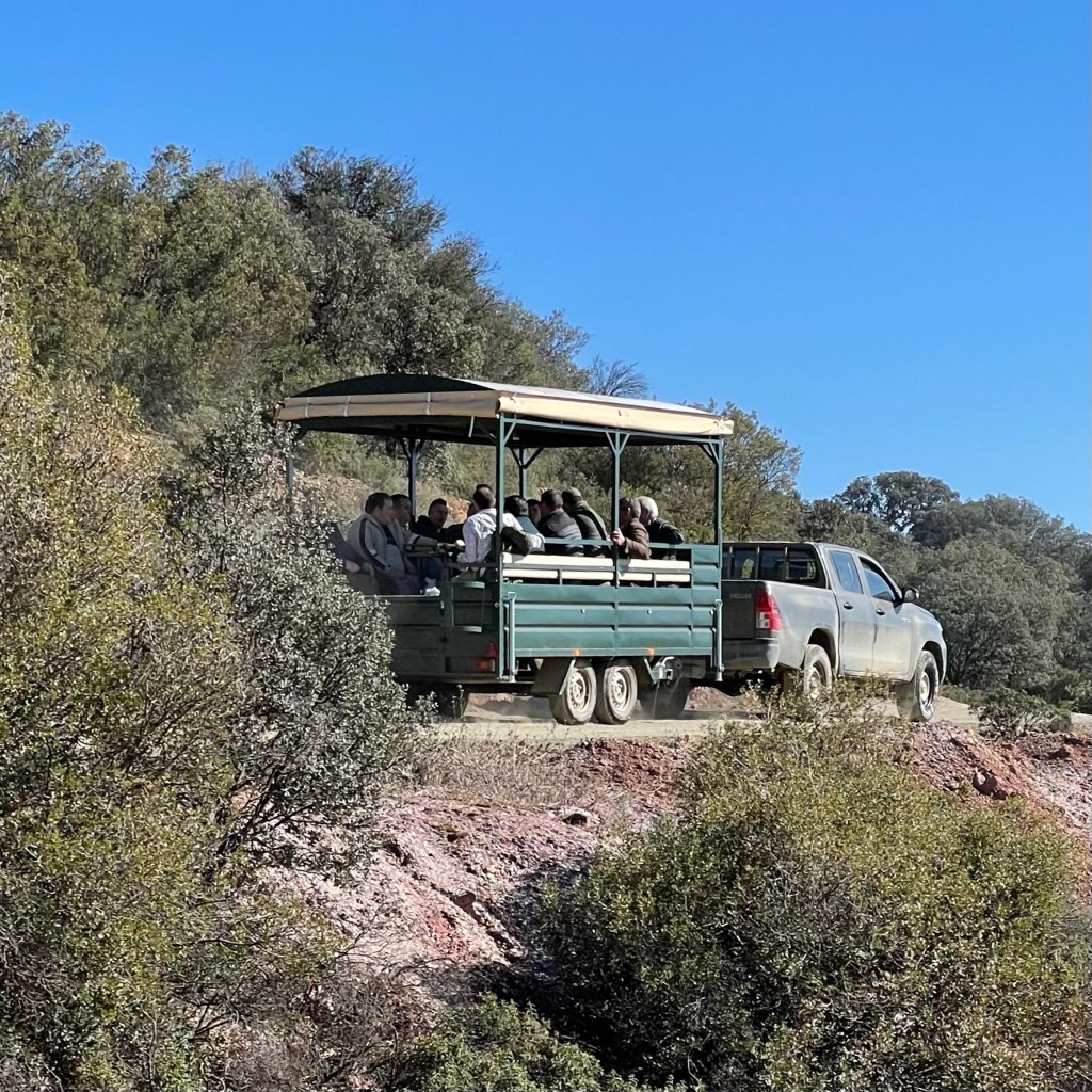 La visita consta de un recorrido por distintos parajes de la finca para ver los corrales de manejo del ganado bravo, lotes de vacas con sus sementales en el campo, los toros y novillos de las distintas camadas, la plaza de tientas, los caballos y yeguas y quizás también observar algún animal salvaje.